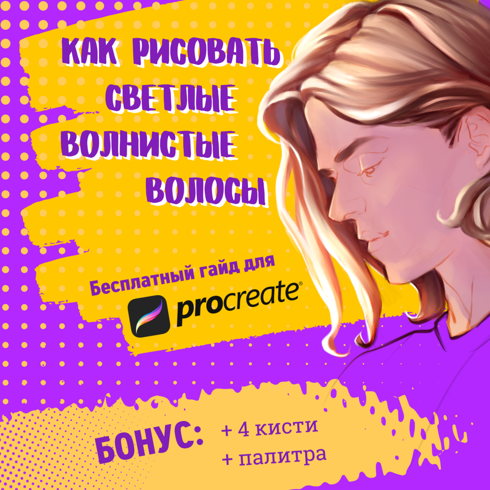 Этот бесплатный гайд содержит пошаговую инструкцию по рисованию светлых волнистых волос в Procreate. В нём разобраны основные этапы создания композиции и покраса, даны советы по выбору кистей и настройке слоёв.